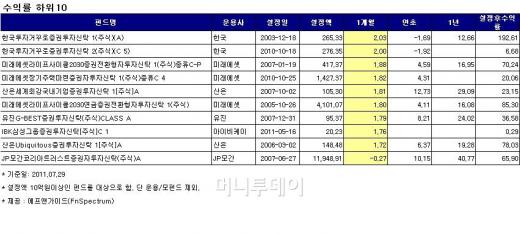 7월 펀드 수익률 차별화 뚜렷..중소형株 '최고' 대형株 '바닥'