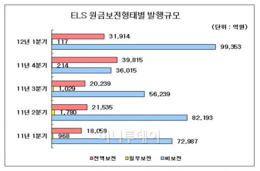 ◇대세 ELS, '쪽박' 안 차려면=예탁결제원에 따르면 올해 1분기 ELS 발행액은 13조1384억원으로 분기사상 최대 규모를 기록했다. 전 분기 대비로는 무려 72.8% 증가했다. 그런데 이 가운데 원금전액보전형은 3조1914억원(24.3%)에 불과하다.