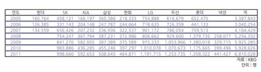 관중 증가에 비해 광고단가 상승폭이 크다는 지적도 있다. 프로야구는 2007년 관중 400만명, 2008년 500만명을 돌파하며 제2의 황금기를 맞았는데 광고단가는 연 20~30%씩 오르는 추세다.