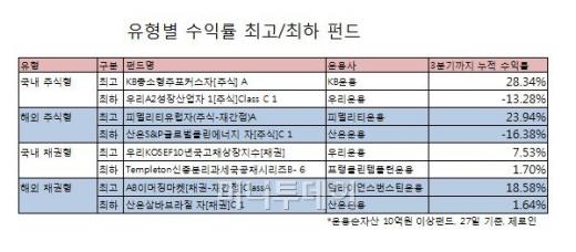 "채권형펀드가 역시 대세~", 3분기 최고·최악 펀드는?
