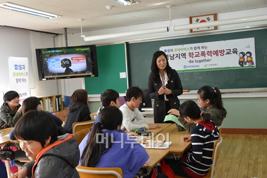 효성이 학교폭력이 가장 심각한 중학교보다 초등학교를 대상으로 폭력 예방교육을 진행하는 것은 교육을 통해 초등학교 고학년 학생들이 미리 학교폭력의 피해와 무서움을 간접 체험함으로써 폭력의 근본을 예방하자는 취지다.