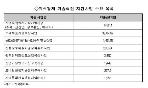 지경부와 KEIT, KIAT는 올해도 산업융합원천기술개발사업, 소재부품기술개발사업, 글로벌전문기술개발사업 등 지식경제 기술혁신사업에 4조8100억원을 지원한다. 이 중 R&D 예산은 일부 지역사업 및 인프라·기반구축사업 예산을 제외한 3조4352억원이다.
