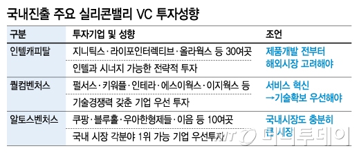 국내기업에 적극적인 투자를 단행하는 실리콘밸리VC는 알토스벤처(이하 알토스)와 인텔캐피탈(이하 인텔), 퀄컴벤처스(이하 퀄컴)다.