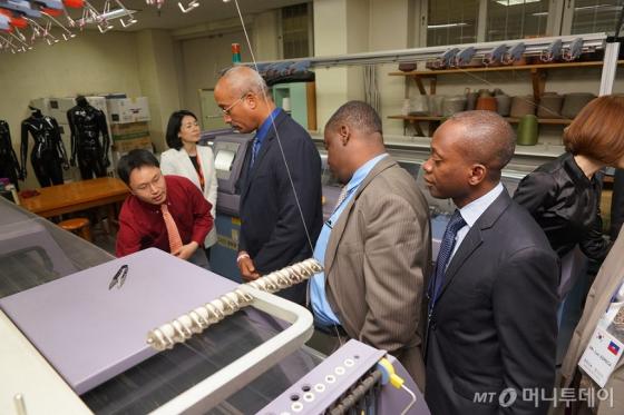 아이티방문단 일행은 공식 환영행사 후 섬유의류비즈니스과, 패션디자인과 등의 섬유관련 학과의 실습실을 견학하고 학생들의 수업을 참관했다.
