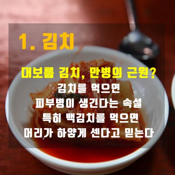 대보름에 김치를 먹으면 온몸에 살이 부르트는 피부병이 생긴다는 속설이 있다. 경북 고령군에서는 김치의 산성이 입안을 ‘톡’ 쏘는 것처럼 김치를 먹으면 벌이 ‘톡’ 쏜다고 생각해 먹지 않는다. 백김치와 동치미도 먹으면 흰머리가 생기고 못자리에 이끼가 낀다고 믿어 피하고자 했다.
