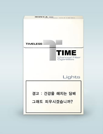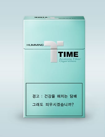 KT&G의 '타임' 시리즈 담배갑은 펄(진주빛) 처리된 하얀색, 파란색, 초록색을 기본으로, 중앙에 'T'를 형상화한 양각의 은색 도형을 새겨 넣었다.