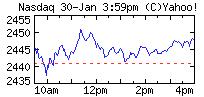 나스닥지수(그래프)는 7.55 포인트(0.31%) 오른 2448.64, S&P 500은 8.20 포인트(0.58%) 오른 1428.82를 각각 기록했다.