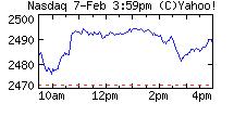 나스닥지수(그래프)는 19.01 포인트(0.77%) 상승, 2490.50을, S&P 500은 2.02 포인트(0.14%) 오른 1450.02를 각각 기록했다.