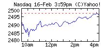 반면 나스닥지수(그래프)는 0.79 포인트(0.03%) 하락한 2496.31을, S&P 500은 1.27 포인트(0.09%) 하락한 1455.54를 각각 기록했다.