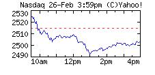 나스닥지수(그래프)는 10.58포인트(0.42%) 하락한 2504.52를, S&P 500은 1.82 포인트(0.13%) 하락한 1449.50을 각각 기록했다.