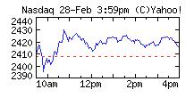 나스닥지수(그래프)는 8.27 포인트(0.34%) 상승, 2416.13을, S&P 500은 7.78 포인트(0.56%) 오른 1406.82를 각각 기록했다.