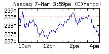 나스닥지수(그래프)는 10.50 포인트(0.44%) 내린 2374.64, S&P 500은 3.44 포인트(0.25%) 내린 1391.97을 각각 기록했다.