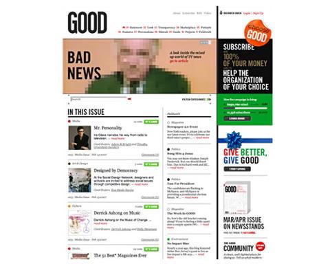 격월간지 굿 매거진은 인크(Inc.) 매거진의 창립자 베니 골드허시의 아들 벤 골드허시(26)가 2006년 9월 선보인 잡지로 '(사회에) 관심을 갖는 이들'을 대상으로 한다. 독자층은 교양있고 미디어에 정통하며 창의적이고 비판적인, 미래 리더의 자질을 갖춘 21~35세.