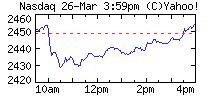 반면 나스닥지수(그래프)는 6.70 포인트(0.27%) 오른 2455.63, S&P 500은 1.39 포인트(0.10%) 오른 1437.50을 각각 기록했다.
