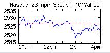 나스닥지수(그래프)는 2.72 포인트(0.11%) 하락한 2523.67, S&P 500은 3.42 포인트(0.23%) 하락한 1480.93를 각각 기록했다.