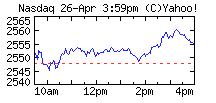 26일(현지시간) 다우지수는 전날보다 15.61 포인트(0.12%) 상승한 1만3105.50을 기록했다. 나스닥지수(그래프)도 6.57 포인트(0.26%) 오른 2554.46을 기록했다.