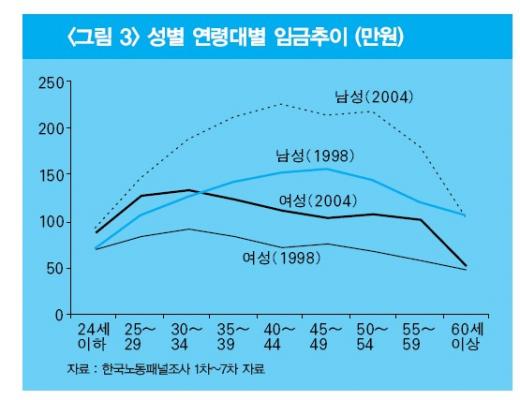 완화되는 것 같았던 고학력자와 저학력자의 임금격차가 2000년대 중반이후 다시 확대되고 있다는 분석이 제기됐다. 또 노동시장 유연화로 고령자의 임금수준이 큰 폭으로 하락한 것으로 나타났다.