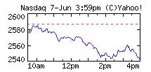 나스닥지수(그래프)는 45.80 포인트(1.77%) 하락한 2541.38, S&P 500은 26.64 포인트(1.76%) 하락한 1490.74를 각각 기록했다.