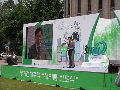 지난달 최초로 공급한 장기전세주택에 대해 오 시장은 "소득제한이 있었음에도 불구하고 경쟁률이 평균 9.25대1에 이르렀으며, 홈페이지가 다운되고 전화가 불통될 만큼 많은 사람들이 관심을 보이고 있다"고 설명했다.