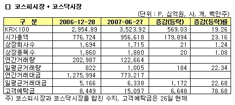 2007년 상반기 한국주식시장에서 잊혀지지 않을 기록의 연속이었다. 35번의 사상최고치를 통해 지수는 1800을 넘었고 시가총액 1000조원을 눈앞에 두기도 했다.