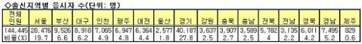 응시생의 거주지역을 살펴보면 △서울 2만8476명(19.7%) △수도권 4만7252명(32.7%) △그외 지역 6만8717명(47.6%) 등으로 나타났다.