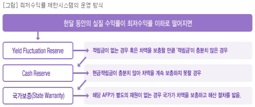 예를 들어 모든 AFP의 실질평균수익률이 3%이면 적어도 12개월동안 실질수익률이 1% 이상이야 한다. 또 전전년도 모든 AFP의 실질평균수익률이 10%이면 적어도 전년도 실질수익률이 5% 이상이어야 한다.