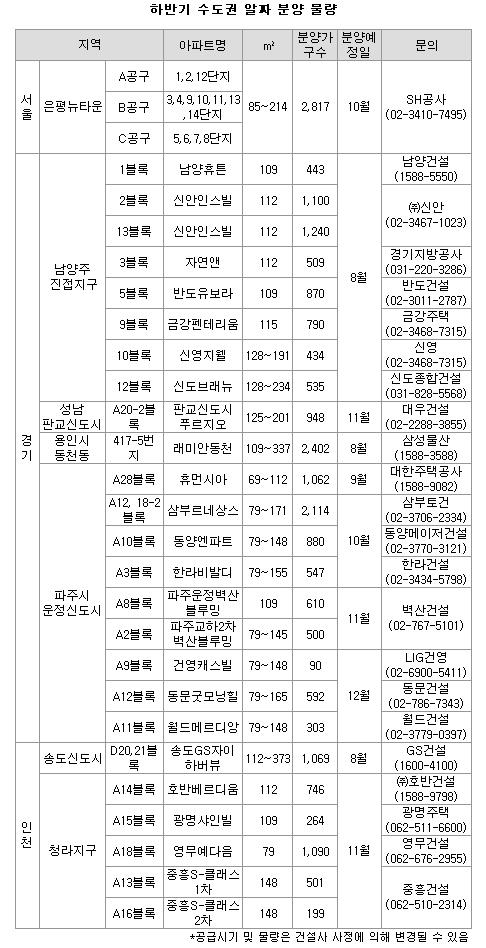◇분양 아파트 "뉴타운·신도시 잡아라'= 하반기 분양 물량 중에서 눈길을 끄는 곳은 은평뉴타운과 성남시 판교신도시, 남양주시 진접지구, 파주시 운정지구 등이다.