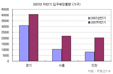 인천의 경우 상반기 및 전년동기와 비교해보면 모두 152%나 증가해 두 배가 넘는 입주가 이뤄진다. 서울은 지난 해에 비하면 약간 줄어들었지만 상반기보다는 112%나 많다.