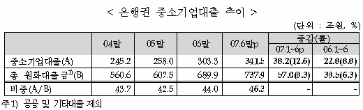 금감위 권혁세 감독정책1국장은 “일부 은행들이 하반기 영업점 성과지표(KPI)중 대출관련 평가비중을 하향조정하고 중기대출 목표도 낮춘 것으로 파악됐다”며 “하반기에는 중기대출 증가세가 둔화될 것”으로 전망했다.