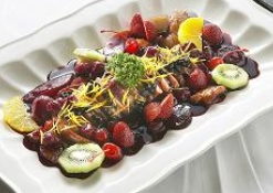 오리가슴살에 레드 와인, 과일소스, 민트 젤리 소스 등의 다양한 드레싱 재료를 가미해 만든 칵테일에 망고, 오렌지 등의 갖가지 과일과 파슬리 등의 채소를 곁들인 요리.