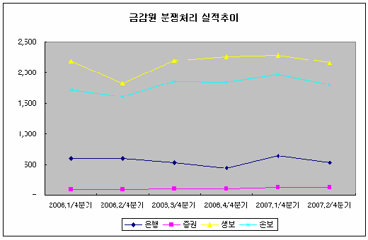 민원 접수가 늘어나면서 분쟁조정 건수도 줄어들지 않고 있다. 올 1/4분기의 경우 생명보험 분쟁처리 건수는 2284건으로 전년동기 대비 4% 증가했으며, 손해보험 역시 14% 증가했다. 2/4분기에도 각각 19%와 13% 늘어났다.
