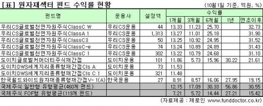 펀드평가회사 제로인에 따르면 설정액 10억원 이상인 원자재펀드는 연초 이후 안정적인 수익을 올리고 있다. 특히 우리CS글로벌천연자원주식은 모든 클래스에서 연초 이후 30%를 웃도는 고수익을 기록한 것으로 나타났다.