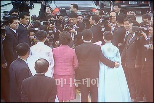 남북정상회담 참석을 위해 평양으로 출발한 노무현(盧武鉉) 대통령이 2일 오전 도보로 군사분계선(MDL)을 통과해 북측 환영진에게 꽃다발을 전해 받고 기념촬영을 하고 있다. <서울프레스센터 스크린 촬영> 독자들의 PICK! 5년 전 사라진 걸그룹 리더 폭로…"빚쟁이라며 인터넷방송 시켜" '친모 절연' 장윤정, 부친과는 각별…"단둘이 여행 계획" "소름 끼치게 해달라" 박나래, 예능 무편집 등장...미래 예언? 친구 아내와 바람난 남편...월 300만원 받고 방 잡아준 친구