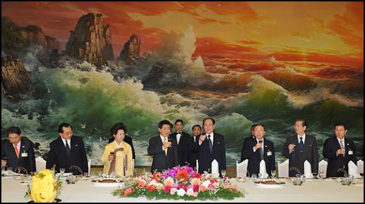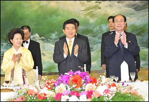 2일 평양 목란관에서 열린 김영남 북한 최고인민회의 상임위원장 주최 공식 만찬에서 노무현 대통령과 김 상임위원장이 건배를 하고 있다. -청와대 사진기자단- 독자들의 PICK! 5년 전 사라진 걸그룹 리더 충격 폭로…"빚쟁이라며 인터넷방송 시켜" '40억 건물주' 이해인 "대출만 32억…이자 계산하다 못 자" 토로 친구 아내와 바람난 남편...월 300만원 받고 방 잡아준 친구 배우 정은우, 돌연 사망 비보…하루 전엔 SNS에 장국영 사진