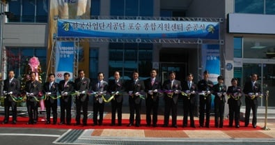 한국산업단지공단은 11일 김칠두 이사장(사진 왼쪽에서 8번째), 산자부 이동욱 입지총괄팀장(사진 왼쪽에서 9번째), 이해구 두원공과대학 학장(사진 왼쪽에서 7번째), 홍석희 포승산업단지 경영자협의회장 등 200여 명이 참석한 가운데, ‘포승종합지원센터’ 준공식을 갖고 아산산업단지 입주기업에 대한 본격적인 지원에 나섰다.