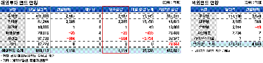 주요 유입펀드는 미래에셋솔로몬주식 1에 1,196억원, 미래에셋디스커버리주식형 3CLASS-A에 948억원, 칸서스하베스트적립식주식 1ClassK에 607억원, 미래에셋디스커버리주식형 4 C-A에 533억원이 유입됐다.