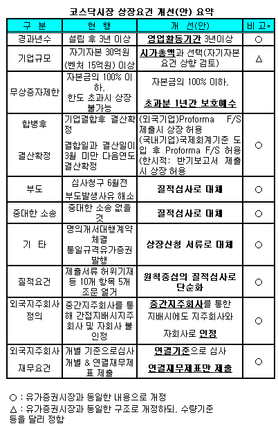 [표]상장제도 개선안 요약