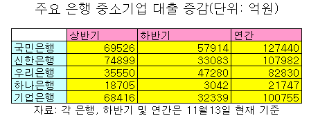 ◇중소기업, 자영업자들만 '골병'= 은행들의 '쏠림' 행태에 대한 비난의 목소리도 거세질 것으로 보인다.