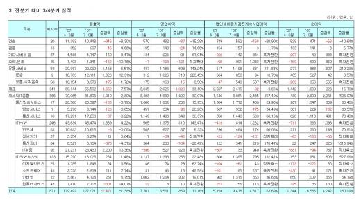 [표]코스닥, 3분기 업종별 실적
