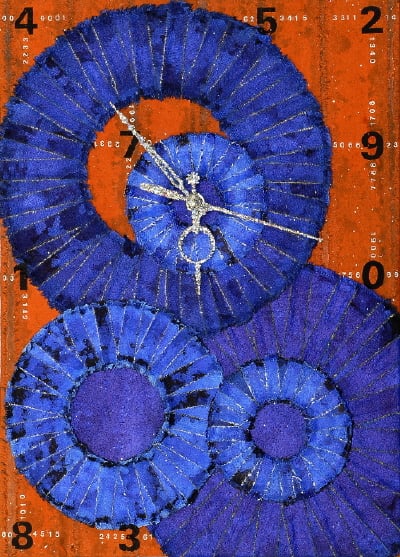 Cosmic signal-space 작가명:정명교. 재료:캔버스에 혼합재료.시계. 24*33cm, 2007