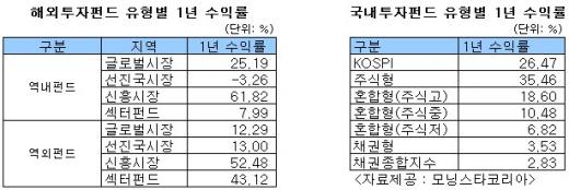 최근 증시급락 여파로 1개월 수익률은 -6.99%로 급락했다. 코스피지수 하락폭(5.5%)보다 손실이 컸다. 혼합형펀드의 1주 수익률과 1개월 수익률도 모두 마이너스로 돌아섰다.