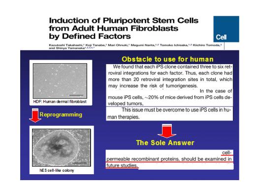 체세포 역분화를 실현했던 연구그룹 역시 자신들의 밝힌 혁신기술의 문제점을 해결할 수 있는 유력한 대안으로 프로셀㈜이 보유한 '세포투과성 단백질' 재조합 기술에 주목하고 있다.