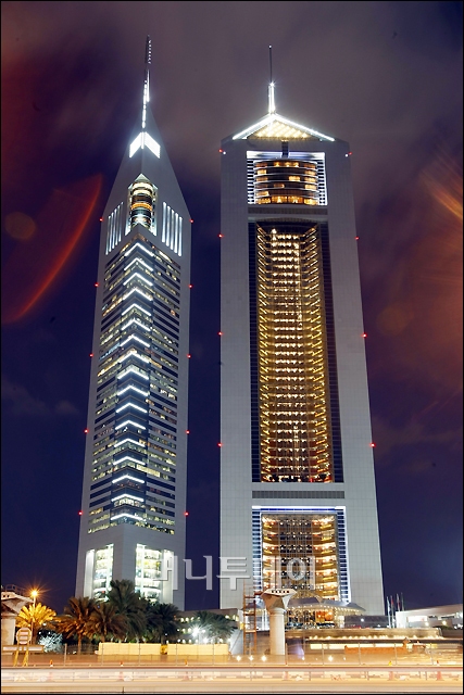 ↑버즈 두바이가 건설되기 전에 두바이에서 가장 높은 빌딩으로 우리나라 쌍용건설이 건설한 355미터 높이의 '에미레이트 타워' 지난 2000년 완공 당시 UAE의 상징으로 불렸다. ⓒ<임성균 기자 tjdrbs23@>