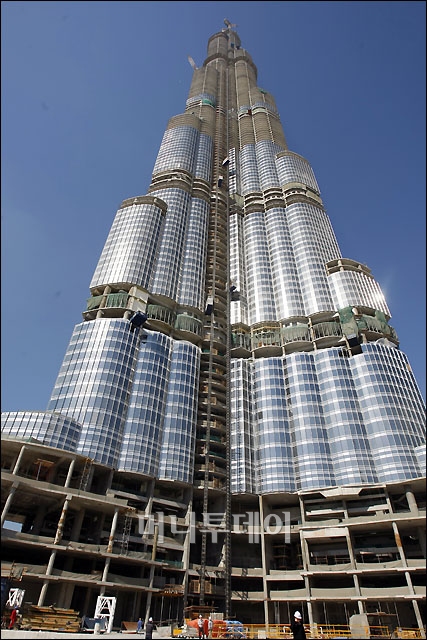 삼성물산이 참여하고 있는 세계 최고층 건물 '버즈두바이'에서 바라본 두바이 전경 모습. 버즈두바이는 무자년 1월1일 0시를 기해 600미터를 돌파 관악산(632m) 혹은 63빌딩 높이의 2개반에 이른다.