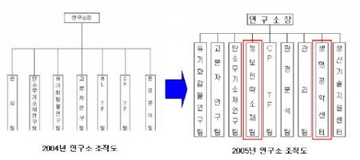 사업보고서 상의 '연구개발활동' 부분이 바로 신규사업에 대한 힌트를 얻을 수 있었던 부분인데 2004년까지는 없었던 '정보전략소재팀'이 2005년도 들어서면서 살짝 그 모습을 드러내게 된다. '정보전략소재팀'과 함께 '생명공학센터' 또한 연구소 조직에서 못 보던 조직인데 당시 신규사업 중의 하나로서 '생명공학' 분야도 '소재사업'과 함께 검토되었던 것으로 추측된다.