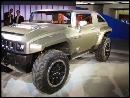 GM은 13일(미국 현지시간) 미국 디트로이트 코보 센터에서 열리고 있는 '2008 북미 국제 오토쇼'에 기존 허머보다 컴팩트하게 줄인 허머HX 컨셉트카를 선보였다. 이 차는 한국인 디자이너 강민영씨가 디자인한 차로 유명하다. 독자들의 PICK! 홍서범·조갑경, '아들 불륜' 사과…"양육비·위자료 빨리 주도록 할 것" 화사, 속옷이 다 보여...과감한 드레스 연출에 '깜짝' 월 700만원 벌어도..."생활비 30만원, 한국인 남편 짠돌이" 이하이 "도끼, 하나뿐인 내 남자" 열애 인정…"두 사람 지금 미국에"