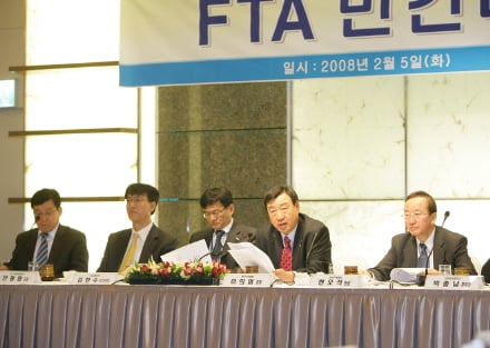 이날 회의에는 대책위 공동위원장인 이희범 무역협회장과 외교부 김한수 FTA 추진단장 등 30여명이 참석했다.
