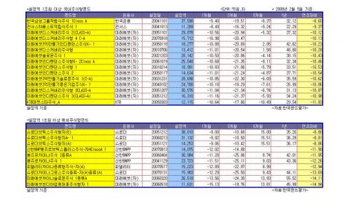 글로벌 증시바람을 거세게 맞기는 해외펀드도 마찬가지다. 특히 브릭스와 중국펀드에 쏠린 설정액 1조원 이상 대형 해외펀드들도 올들어 8%대 후반에서 최대 14%까지 손해를 입고 있다.