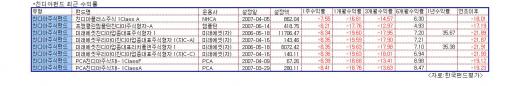 PCA운용의 'PCA친디아주식자I- 1ClassA'는 주간수익률이 -8.41%를 작성중이다. 미래운용의 '친디아업종대표주식형자 1'도 같은 기간 -8.34%나 주저앉는 등 약세를 면치 못하고 있다.