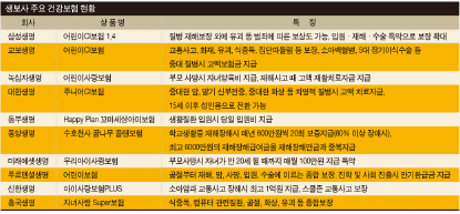 이러한 어린이 사고ㆍ질병에 대비하려면 어린이 건강보험을 눈여겨봐야 한다. 1만~3만원 안팎의 저렴한 보험료로 각종 질병과 사고에 대비할 수 있는 어린이보험이 갈수록 인기다.